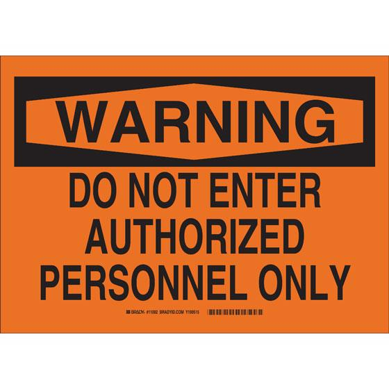 Brady, 26641, 7" x 10" Polystyrene Warning Do Not Enter Authorized Person Only Sign