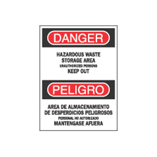 Brady, 38105, 14"x10" Bilingual Danger Hazardous Waste Storage Area Unauthorized... Sign