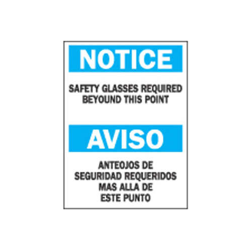 Brady, 38188, 14"x10" B-555 Bilingual Notice Safety Glasses RequiBeyond This Point Sign