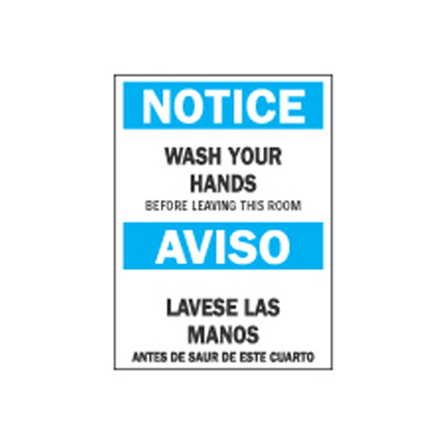 Brady, 38425, 14"x10" Bilingual Notice Wash Your Hands Before Leaving This Room Sign