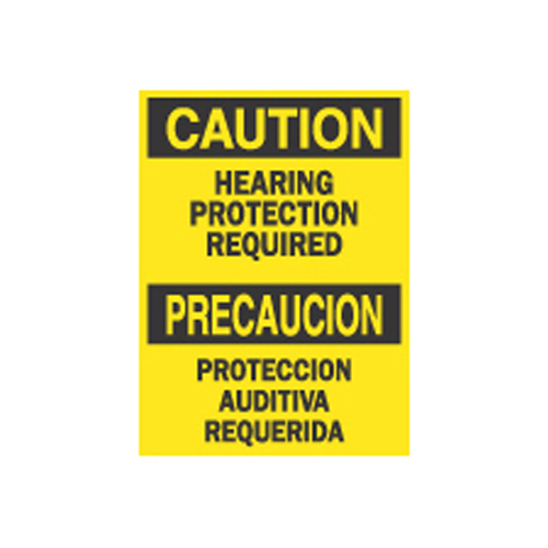 Brady, 38586, 14" x 10" Aluminum Bilingual Caution Hearing Protection Required Sign
