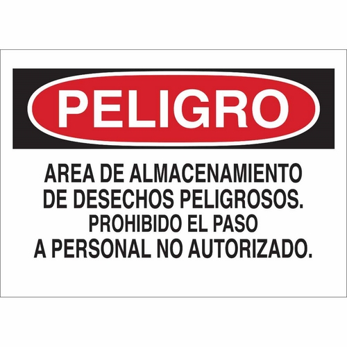 Brady, 38630, 7"x10" Peligro Area De Almacenamiento De Desechos Peligrosos... Sign