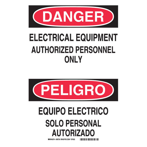 Brady, 38729, Bilingual Danger Electrical Equipment Authorized Personnel Only Sign