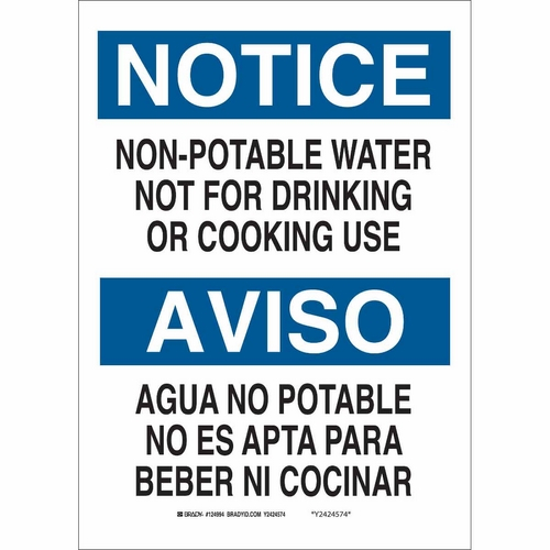 Brady, 39081, Bilingual Notice Non-Potable Water Not for Drinking Or Cooking Use Sign