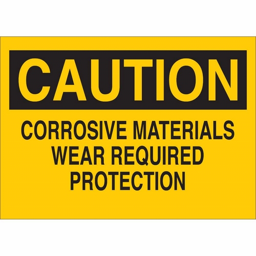Brady, 40836, 7" x 10" B-555 Caution Corrosive Materials Wear Required Protection Sign