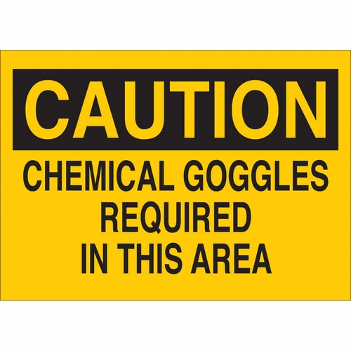 Brady, 41142, 10" x 14" Aluminum Caution Chemical Goggles Required in This Area Sign
