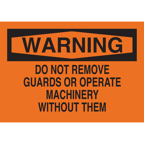 Brady, 42604, 7"x10" Warning Do Not Remove Guards Or Operate Machinery w/ Out Them Sign