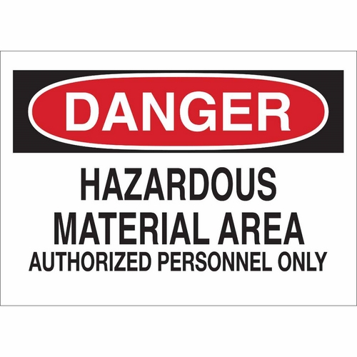 Brady, 43019, 7"x10" B-555 Danger Hazardous Material Area Authorized Personnel Only Sign