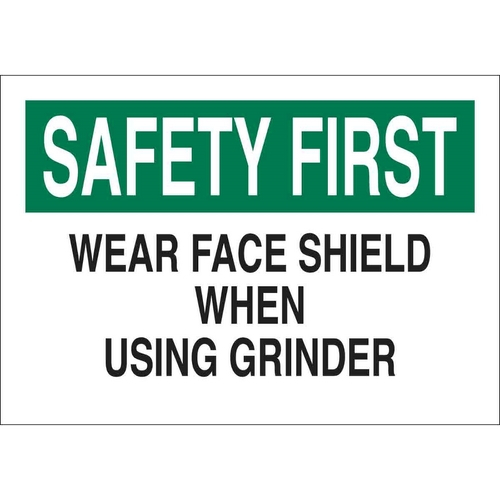 Brady, 43158, 10" x 14" Aluminum Safety First Wear Face Shield When Using Grinder Sign