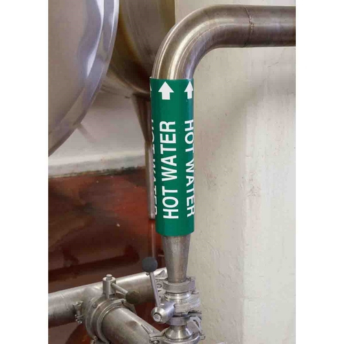 Brady, 4328-C, 2.5" - 3.875" Dia. Plastic Snap-On Pipe Marker: Heating Water Supply