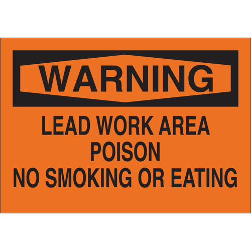 Brady, 43318, 10" x 14" Aluminum Warning Lead Work Area Poison No Smoking Or Eating Sign