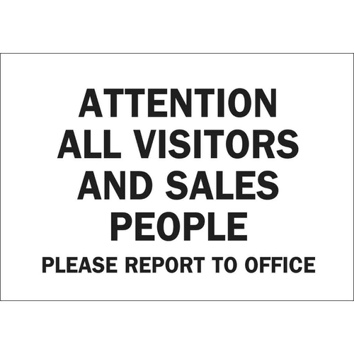 Brady, 43422, 10"x14" Attention All Visitors & Sales People Please Report To Office Sign