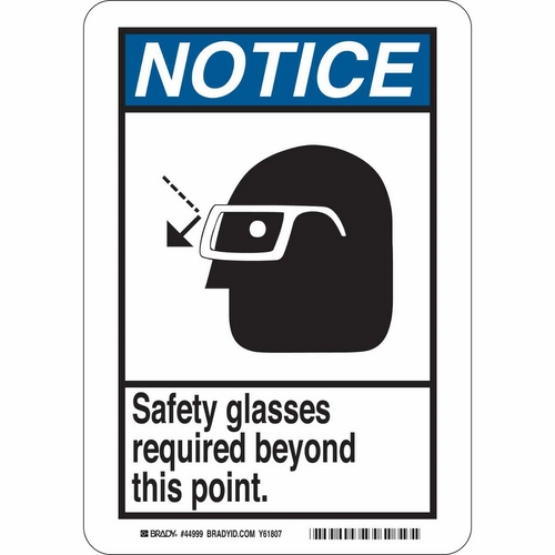 Brady, 45000, 14" x 10" B-120 Notice Safety Glasses Required Beyond This Point. Sign