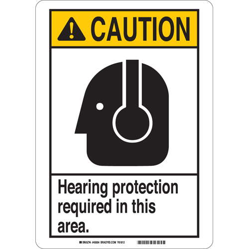 Brady, 45004, 14" x 10" B-120 Caution Hearing Protection Required in This Area. Sign