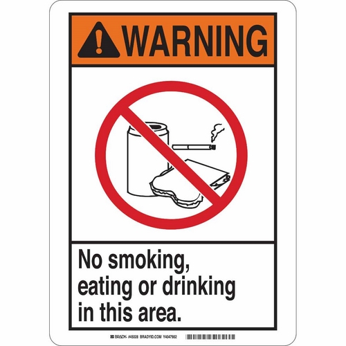 Brady, 45028, 14" x 10" B-120 Warning No Smoking, Eating Or Drinking in This Area. Sign