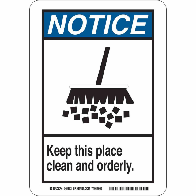 Brady, 45104, "Notice Keep This Place Clean And Orderly." Sign, 14" x 10"