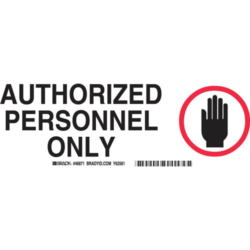 Brady, 46871, 3.5" x 10" Aluminum Authorized Personnel Only Sign, Black/Red on White