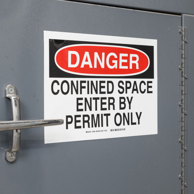 Brady, SV472D, 48593 10" x 14" Vinyl Danger Confined Space Enter By Permit Only Sign