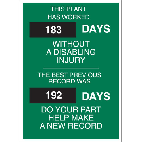 Brady 49111 28" x 20" Steel Safety Scoreboard, Black/White on Green