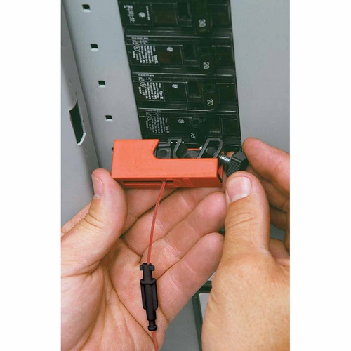 This breaker lockout is part of the EZ Paneloc™ lock rail system, which allows workers to secure lockout devices by passing a plastic key through an EZ Paneloc™ lock rail.