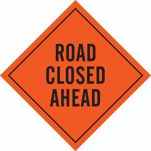 Brady 57018 48" x 48" Vinyl Road Closed Ahead Sign, Black on Orange