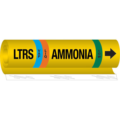 These IIAR-compliant pipe markers come with the traditional yellow background and are recommended for use in labeling ammonia piping and its contents.