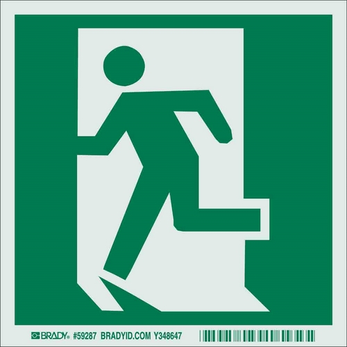 Brady, 59288, 6" x 6" Polystyrene Man Running Through Door Sign, Green on Glow