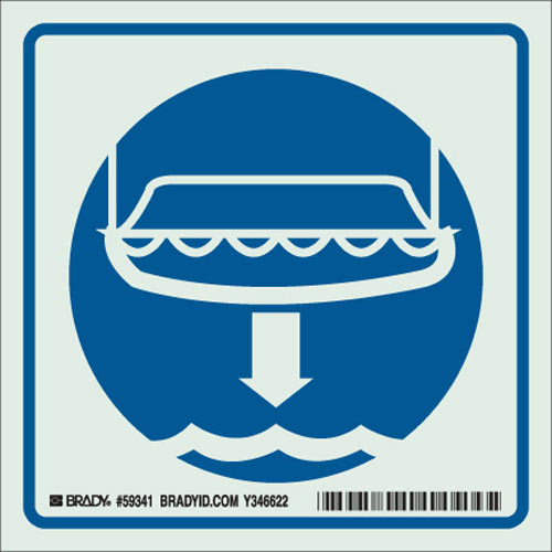 Save 3% each on Brady 59341 6" x 6" Polyester Lifeboat & Arrow Sign, Blue on Glow when you purchase 50 or more