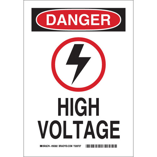 Brady, 59382, 10" x 7" Polyester Danger High Voltage Sign, Black/Red on White