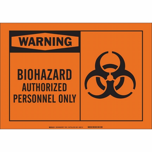 Brady, 62550, 7"x10" B-120 Warning Biohazard Authorized Personnel Only Sign