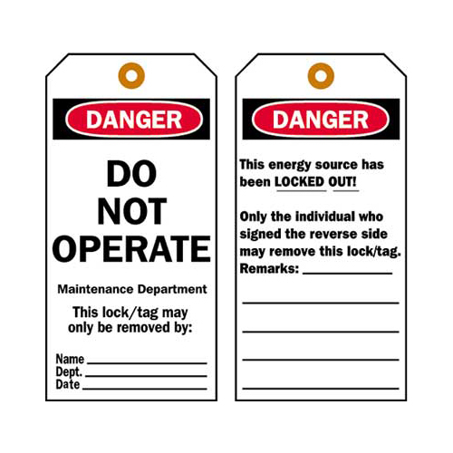 Heavy Duty Polyester (B-837) plastic tags are encapsulated in matte polyester laminate for superior durability during lockout and tagout situations.