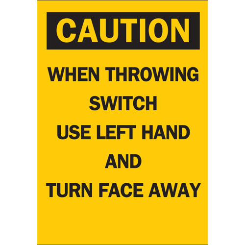 Brady, 65576, 14"x10" Caution When Throwing Switch Use Left Hand and Turn Face Away Sign