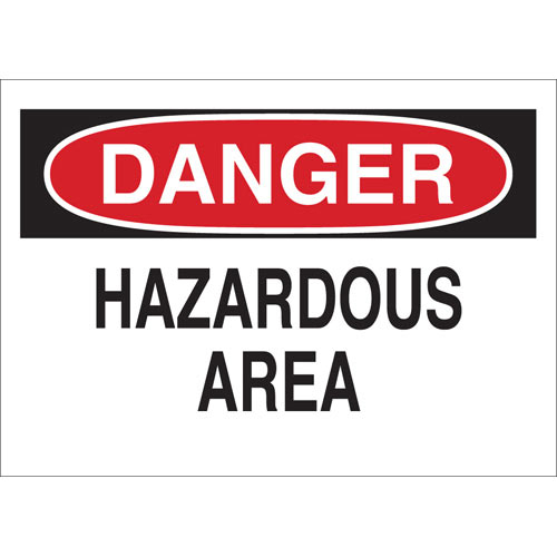 Brady, 69000, 10" x 14" Fiberglass Danger Hazardous Area Sign, Black/Red on White