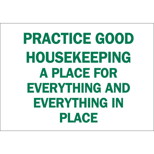 Brady, 69444, 10"x14" Practice Good Housekeeping A Place for Everything... Sign