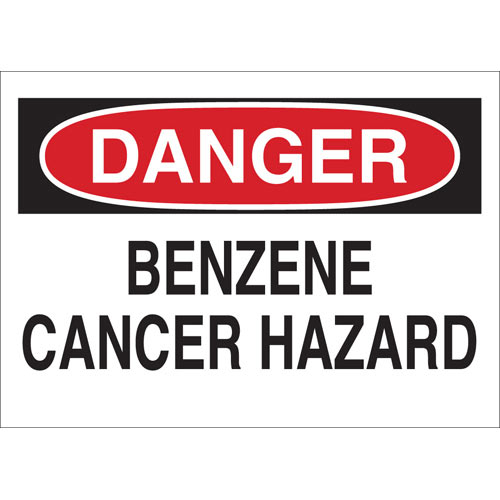Brady, 69765, 10" x 14" Fiberglass Danger Benzene Cancer Hazard Sign, Black/Red on White