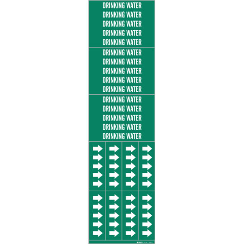 Self-sticking pipe markers from Brady® simplify installation with their factory-applied industrial-grade adhesives: simply peel off the backing and press the marker in place.