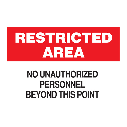 Brady, 71229, 14"x20" Restricted Area No Unauthorized Personnel Beyond This Point Sign