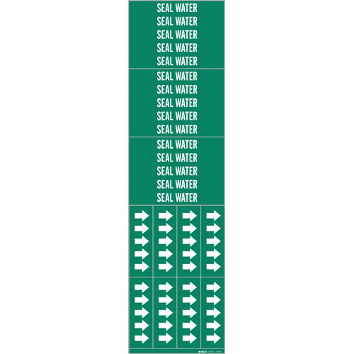Self-sticking pipe markers from Brady® simplify installation with their factory-applied industrial-grade adhesives: simply peel off the backing and press the marker in place.