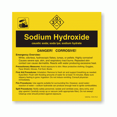 Brady, 7309PLS, 98374 98374 2" x 2" "Sodium Hydroxide" Polyester Label