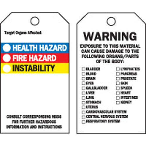 Brady, 76229, 5.75"x3" B-302 Target Organs Affected Tag, Black/Blue/Red/Yellow on White