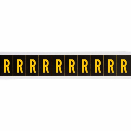 Brady, 7890-R, 78928 1.5" x 0.875" Vinyl 7890 Letter Label w/ Legend: R, Yellow on Black