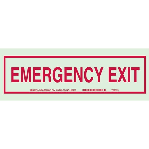 Brady, 80208, 5" x 14" Polyester BradyGlo Emergency Exit Sign, Red on Glow