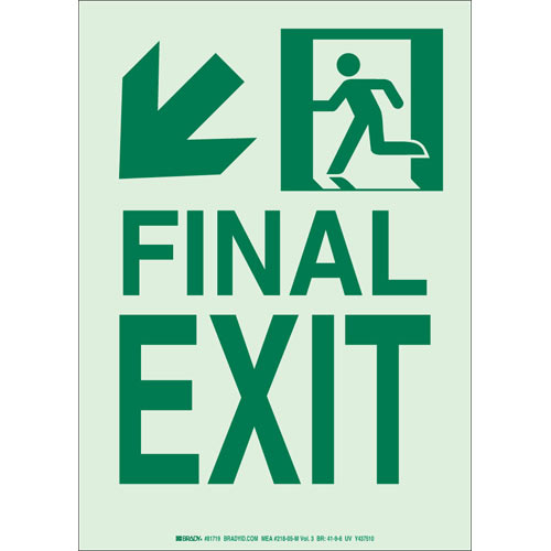Save 3% each on Brady 81719 14" x 10" Polyester Final Exit Sign, Green on Glow when you purchase 10 or more