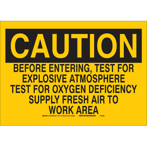 Brady, 84003, 10"x14" Caution Before Entering, Test for Explosive Atmosphere... Sign