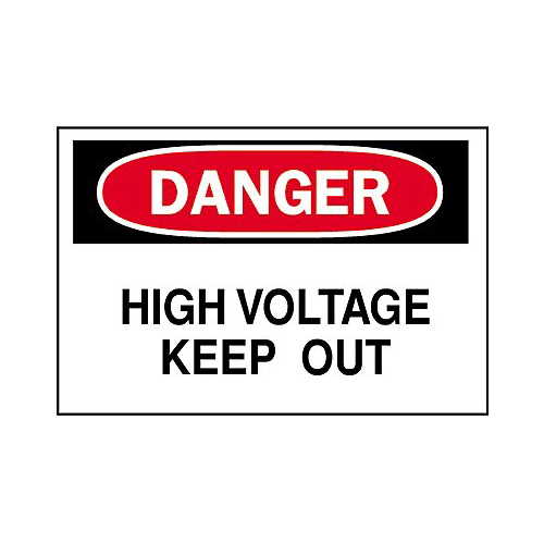 Brady, 84084, 10" x 14" Polyester Danger High Voltage Keep Out Sign, Black/Red on White