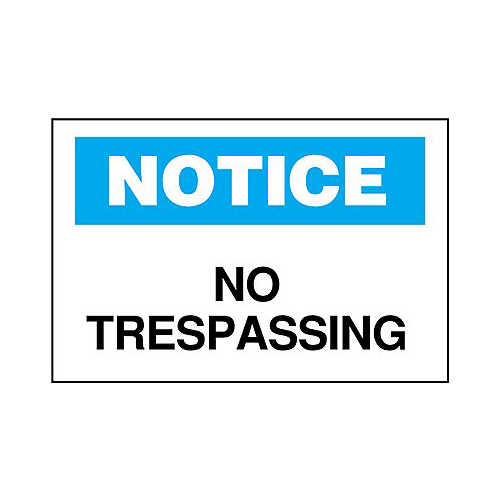 Brady, 84156, 10" x 14" Polyester Notice No Trespassing Sign, Black/Blue on White