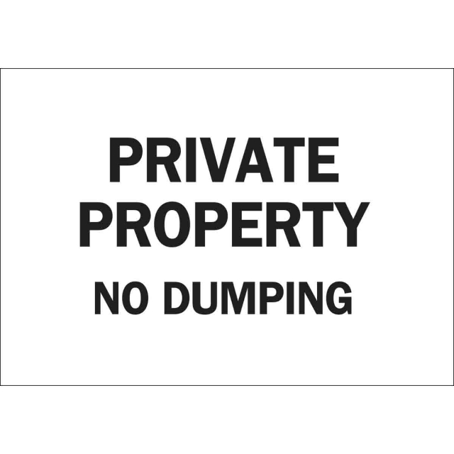 Brady, 84267, 10" x 14" Polyester Private Property No Dumping Sign, Black on White