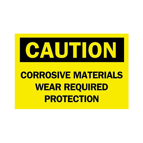 Brady, 84298, 10" x 14" B-302 Caution Corrosive Materials Wear Required Protection Sign