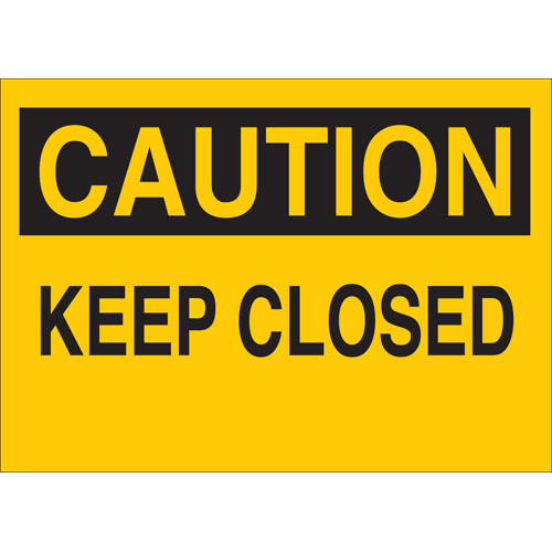 Brady, 84702, 7" x 10" Polyester Caution Keep Closed Sign, Black on Yellow