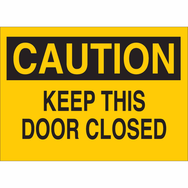 Brady, 84704, 7" x 10" Polyester Caution Keep This Door Closed Sign, Black on Yellow